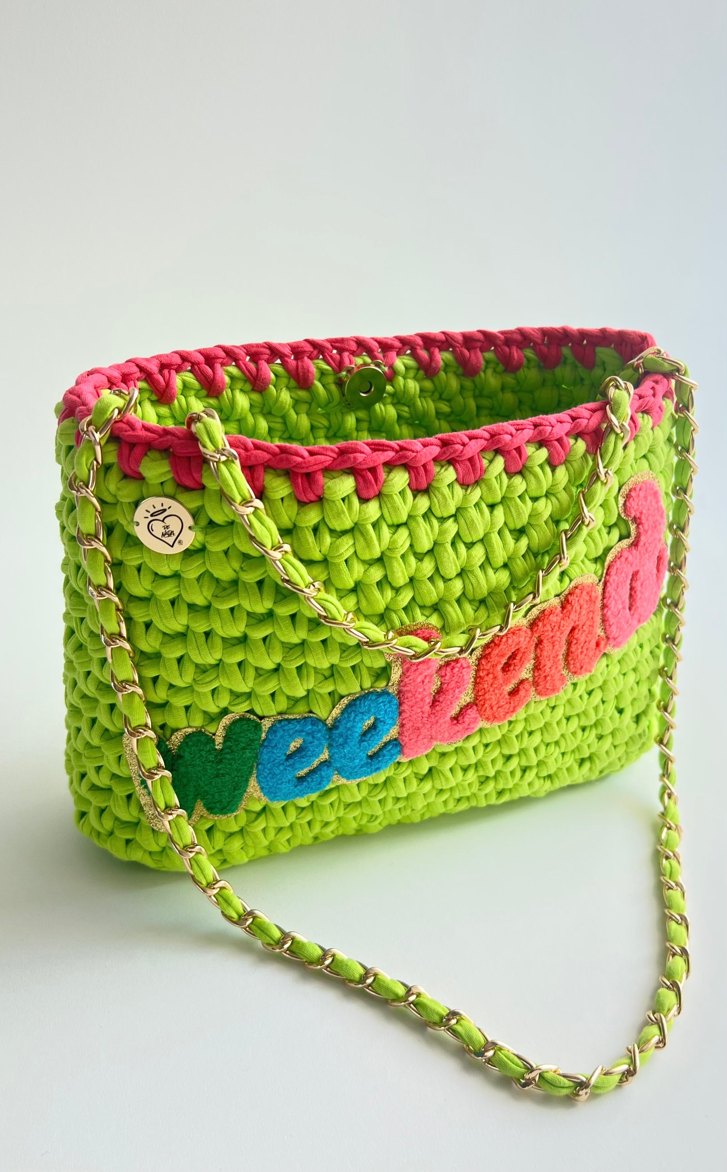 Cette création est un produit éco-responsable, car réalisée en fil de textile 100 % recyclé, issu des usines européennes.